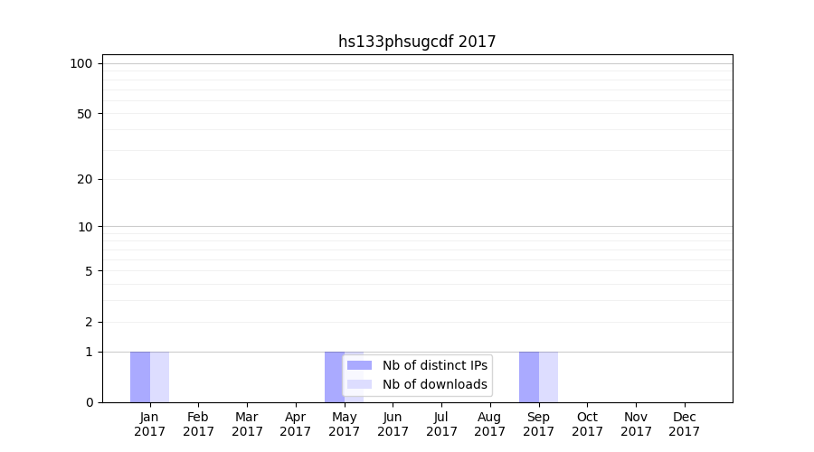 Number of downloads for annotation package hs133phsugcdf, year by year, from 2025 back to 2014 (years with no downloads are omitted):