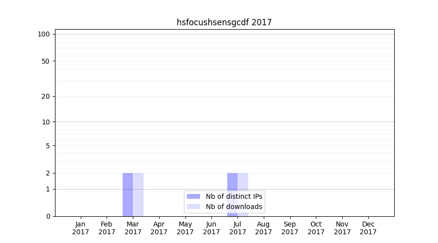Number of downloads for annotation package hsfocushsensgcdf, year by year, from 2025 back to 2014 (years with no downloads are omitted):