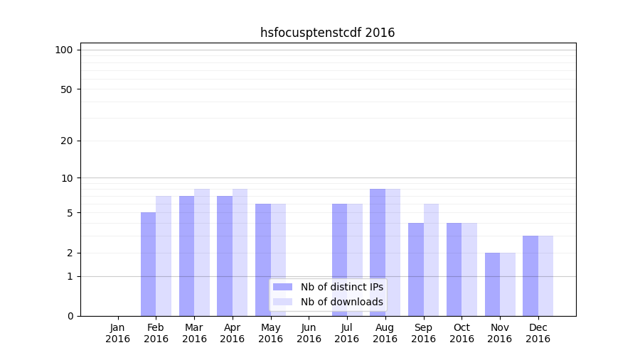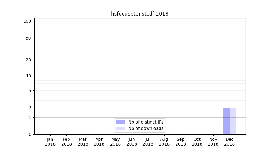 Number of downloads for annotation package hsfocusptenstcdf, year by year, from 2025 back to 2014 (years with no downloads are omitted):