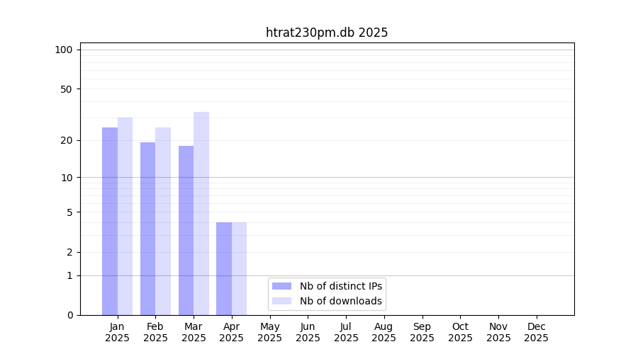 Number of downloads for annotation package htrat230pm.db, year by year, from 2025 back to 2014 (years with no downloads are omitted):