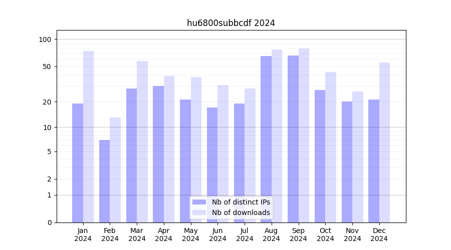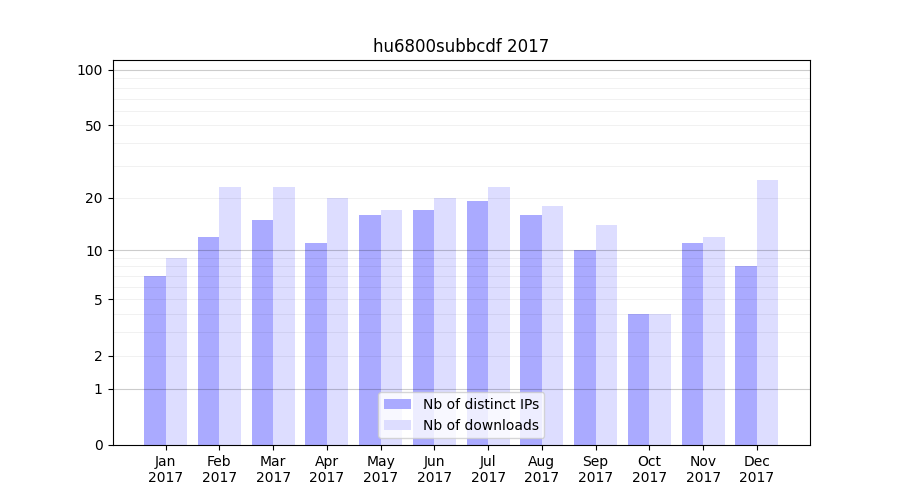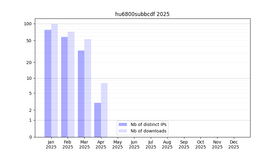 Number of downloads for annotation package hu6800subbcdf, year by year, from 2025 back to 2014 (years with no downloads are omitted):