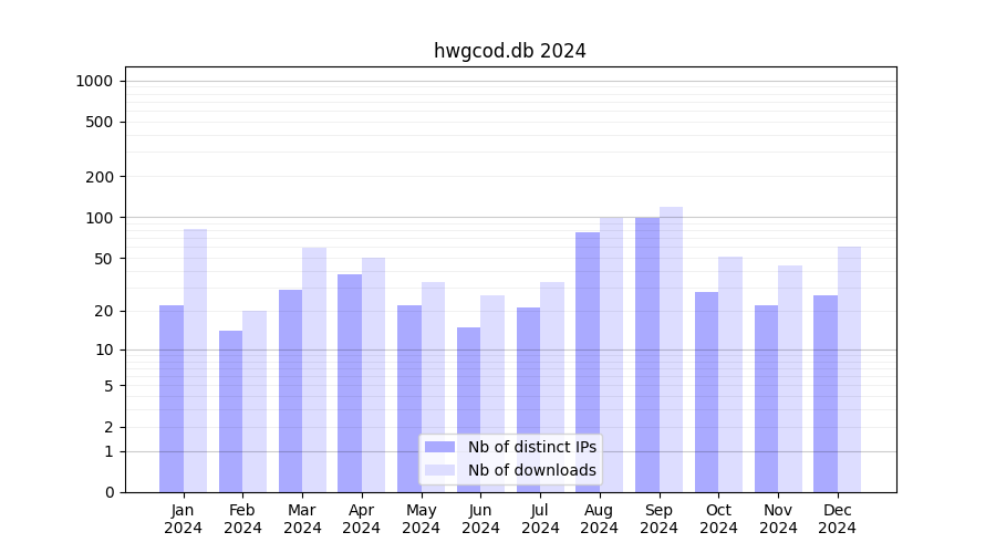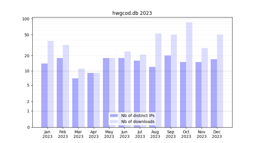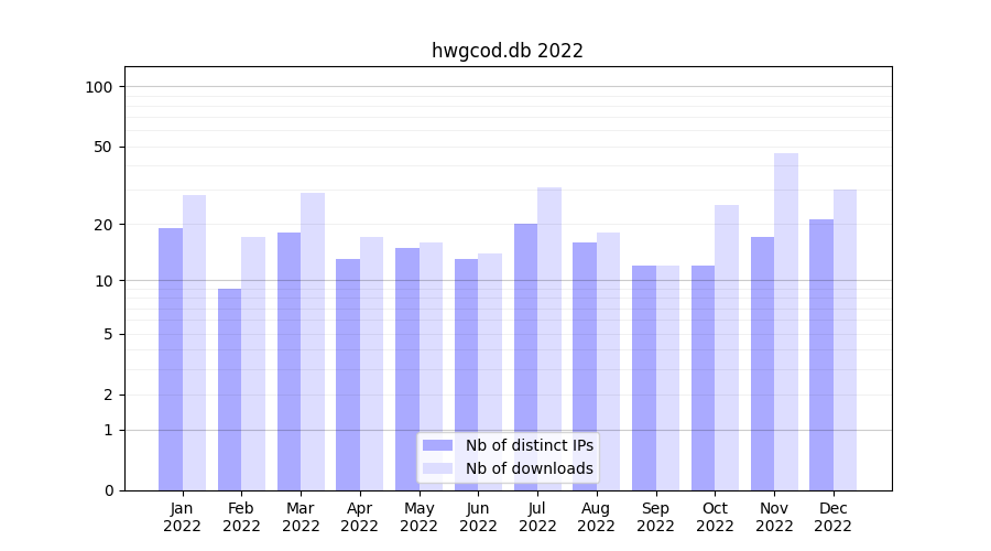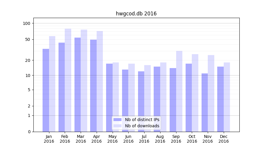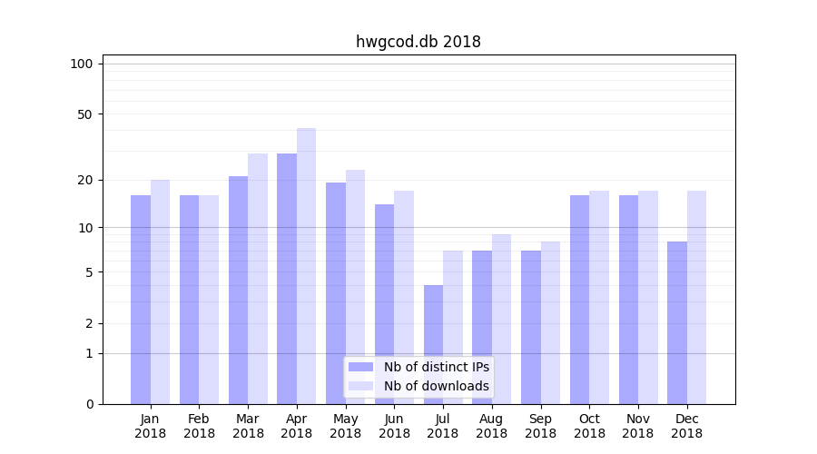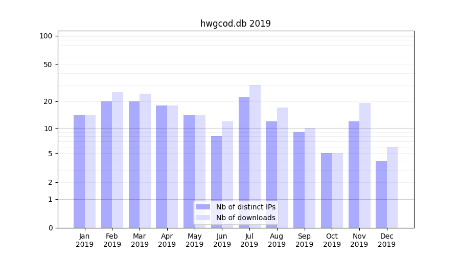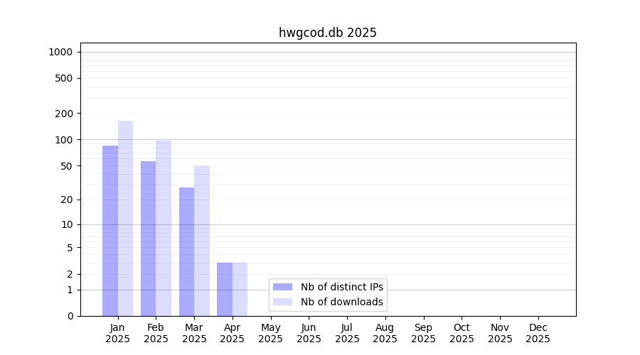 Number of downloads for annotation package hwgcod.db, year by year, from 2025 back to 2014 (years with no downloads are omitted):