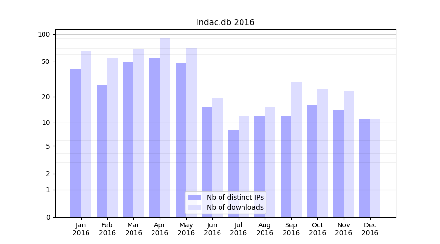 | Month | Nb of distinct IPs | Nb of downloads |