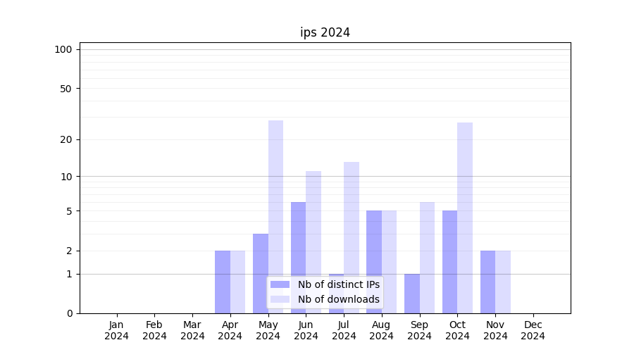Number of downloads for annotation package ips, year by year, from 2025 back to 2014 (years with no downloads are omitted):