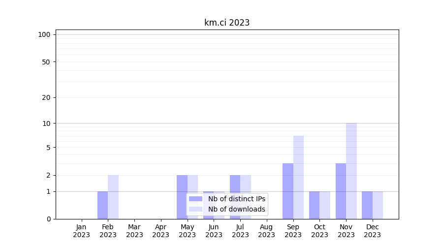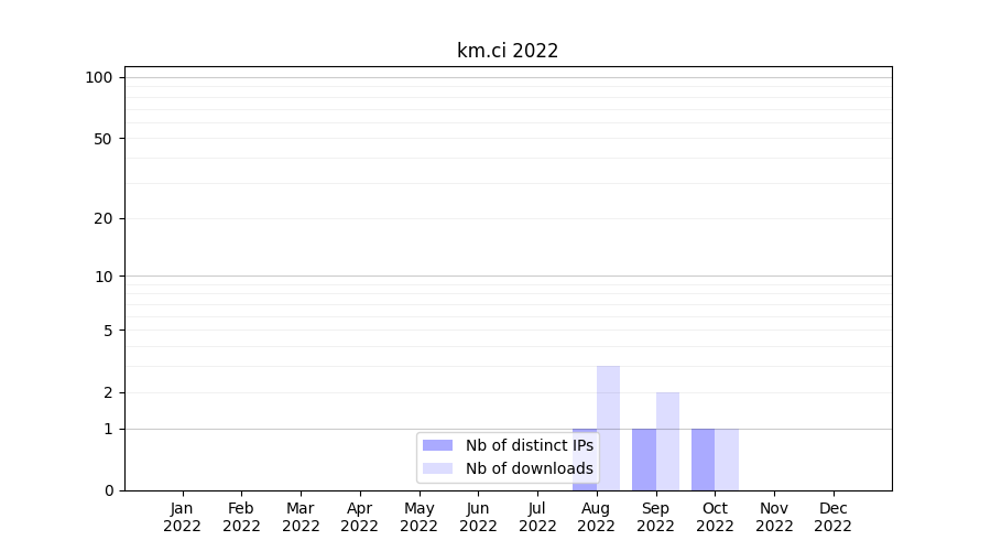 Number of downloads for annotation package km.ci, year by year, from 2025 back to 2014 (years with no downloads are omitted):