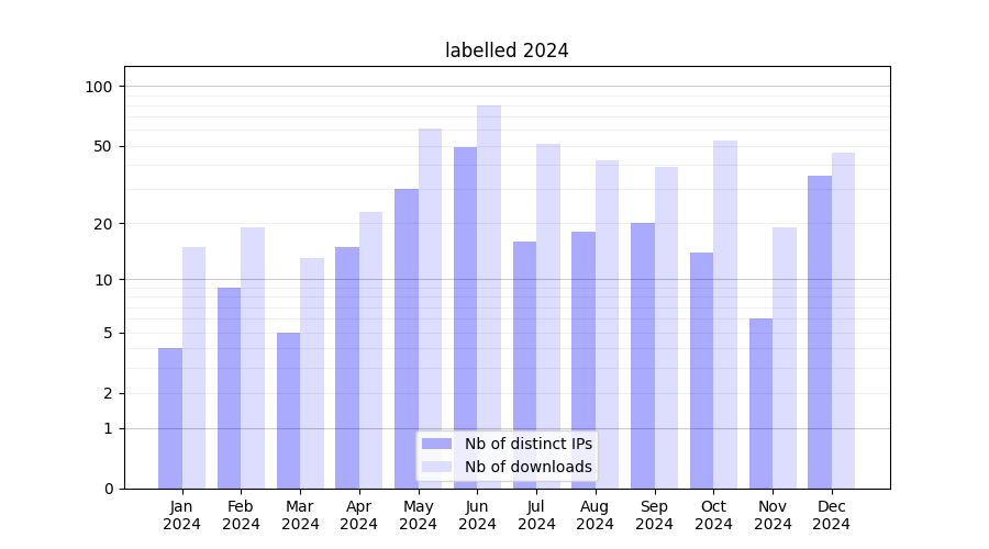 | Month | Nb of distinct IPs | Nb of downloads |