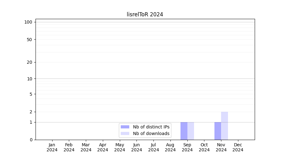 Number of downloads for annotation package lisrelToR, year by year, from 2025 back to 2014 (years with no downloads are omitted):