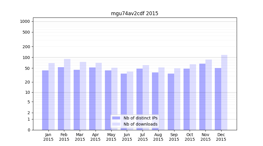Number of downloads for annotation package mgu74av2cdf, year by year, from 2025 back to 2014 (years with no downloads are omitted):