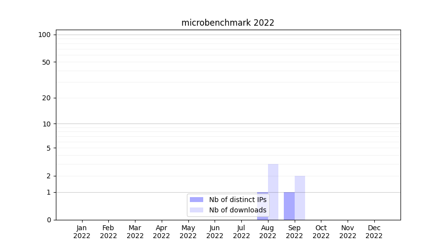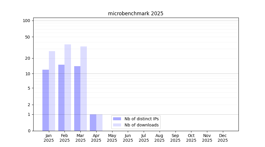 Number of downloads for annotation package microbenchmark, year by year, from 2025 back to 2014 (years with no downloads are omitted):