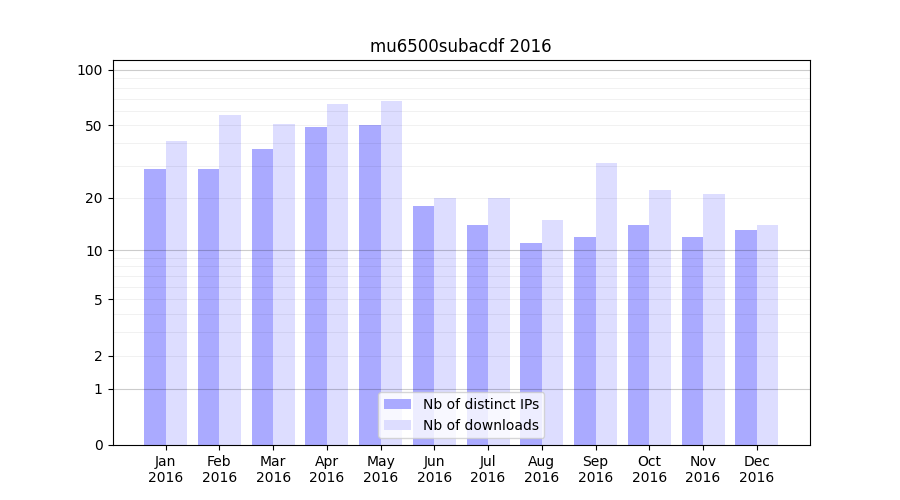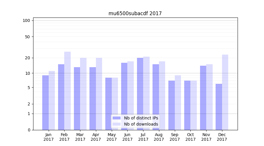 Number of downloads for annotation package mu6500subacdf, year by year, from 2025 back to 2014 (years with no downloads are omitted):