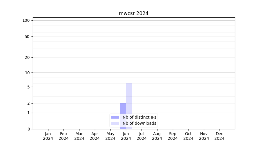 Number of downloads for annotation package mwcsr, year by year, from 2025 back to 2014 (years with no downloads are omitted):