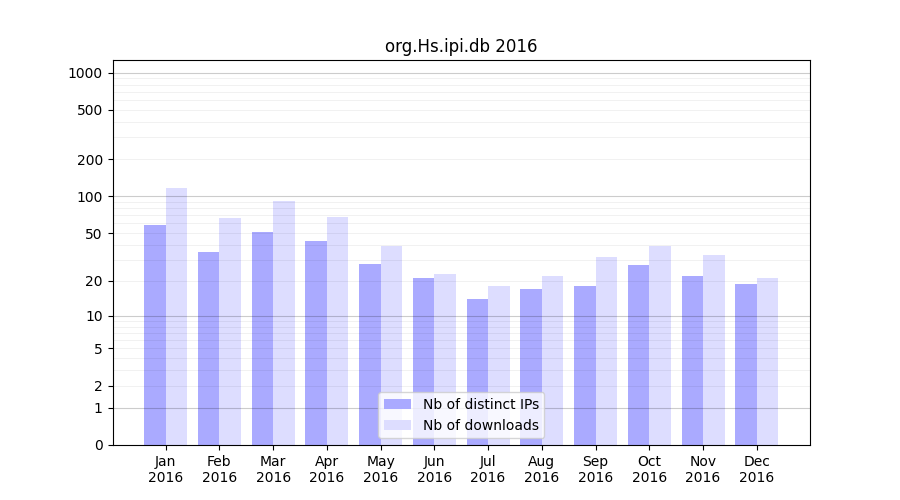 | Month | Nb of distinct IPs | Nb of downloads |
