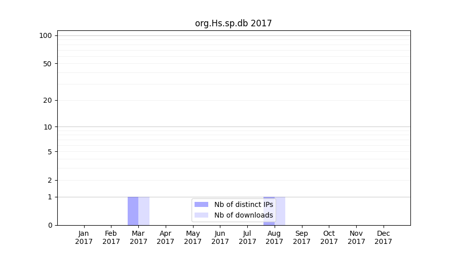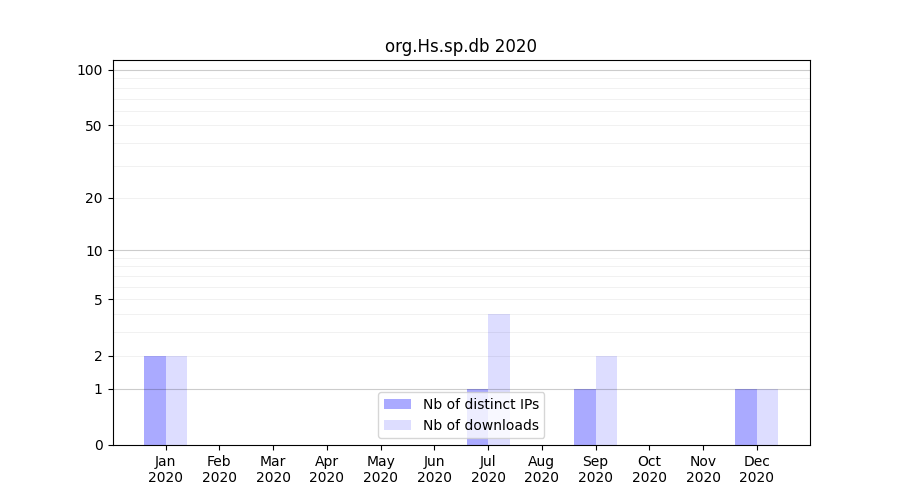 Number of downloads for annotation package org.Hs.sp.db, year by year, from 2025 back to 2014 (years with no downloads are omitted):