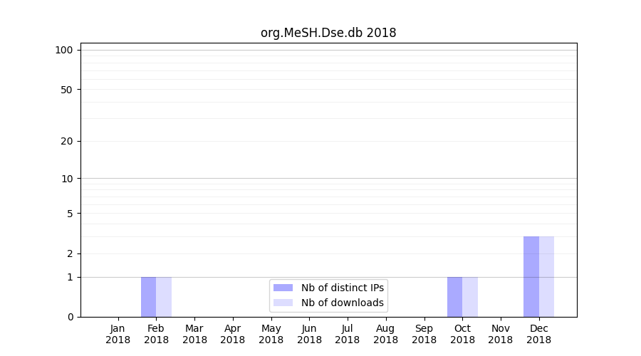 Number of downloads for annotation package org.MeSH.Dse.db, year by year, from 2025 back to 2014 (years with no downloads are omitted):
