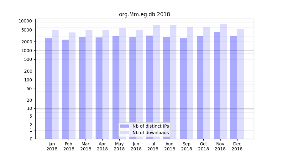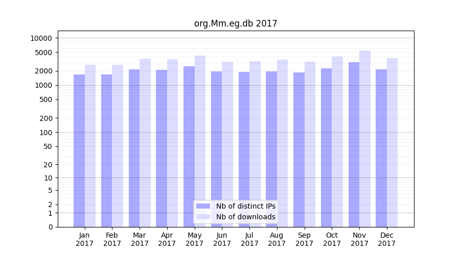 | Month | Nb of distinct IPs | Nb of downloads |