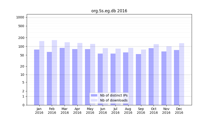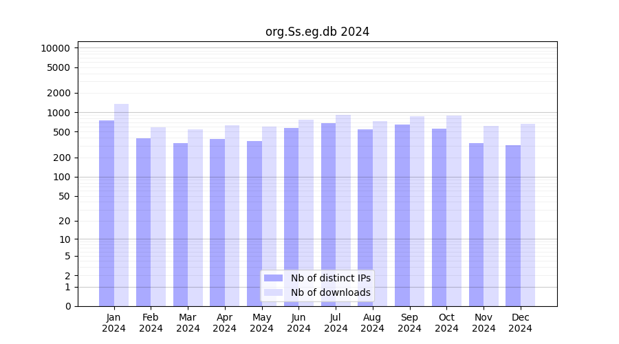 Number of downloads for annotation package org.Ss.eg.db, year by year, from 2025 back to 2014 (years with no downloads are omitted):