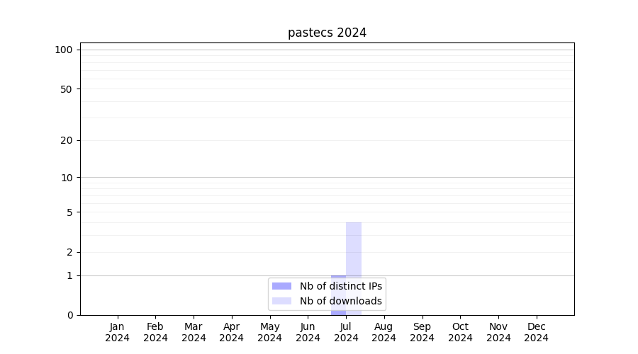 Number of downloads for annotation package pastecs, year by year, from 2025 back to 2014 (years with no downloads are omitted):
