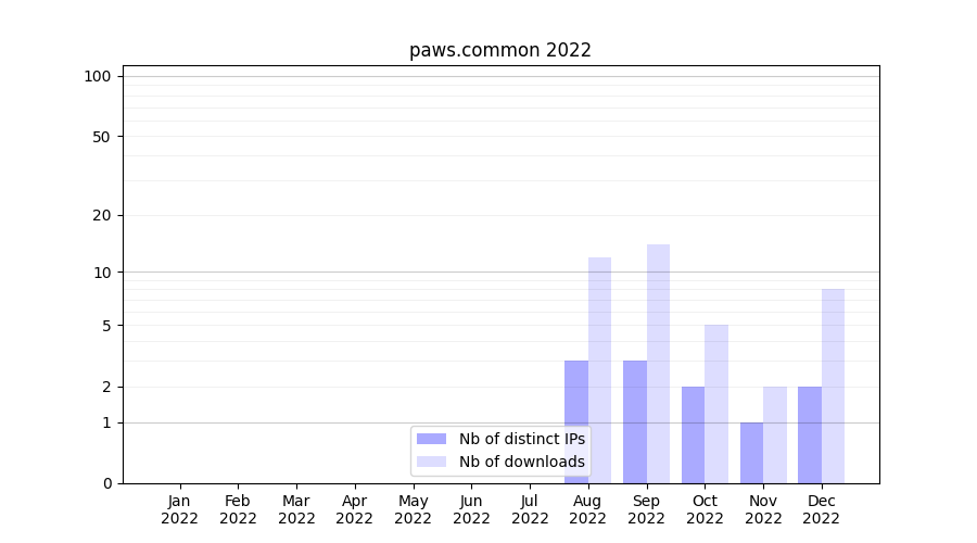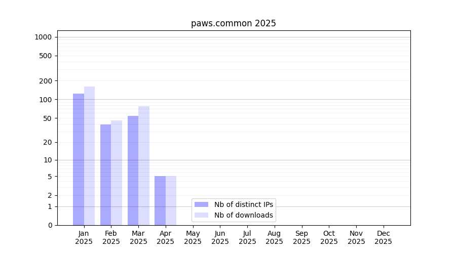 Number of downloads for annotation package paws.common, year by year, from 2025 back to 2014 (years with no downloads are omitted):