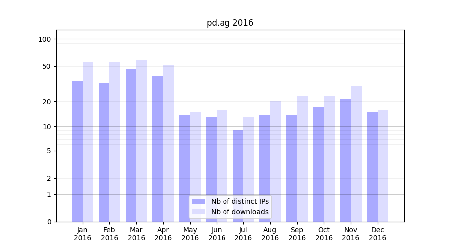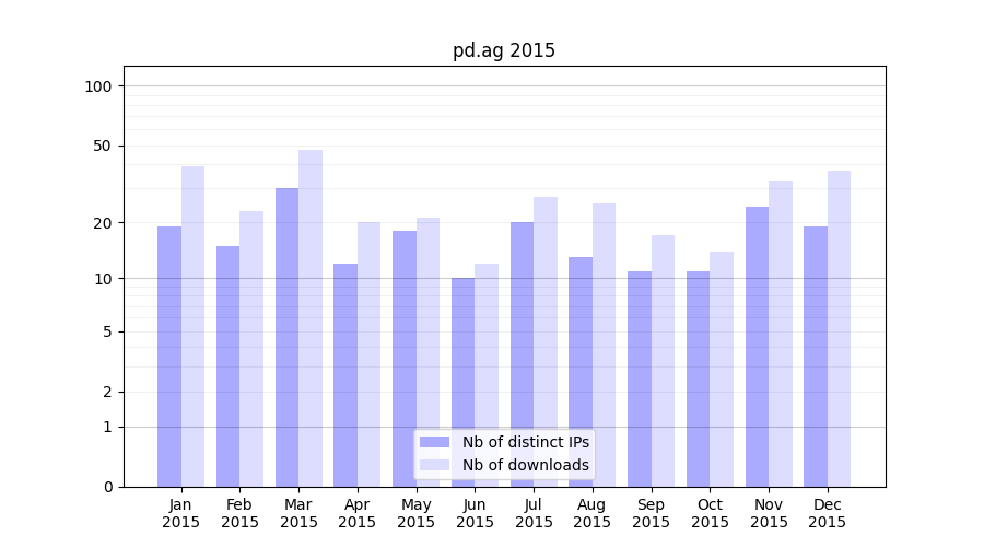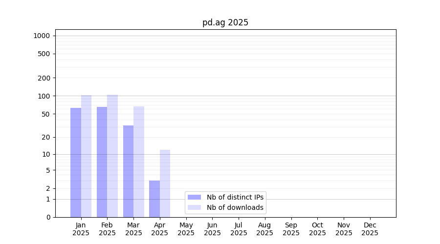 Number of downloads for annotation package pd.ag, year by year, from 2025 back to 2014 (years with no downloads are omitted):