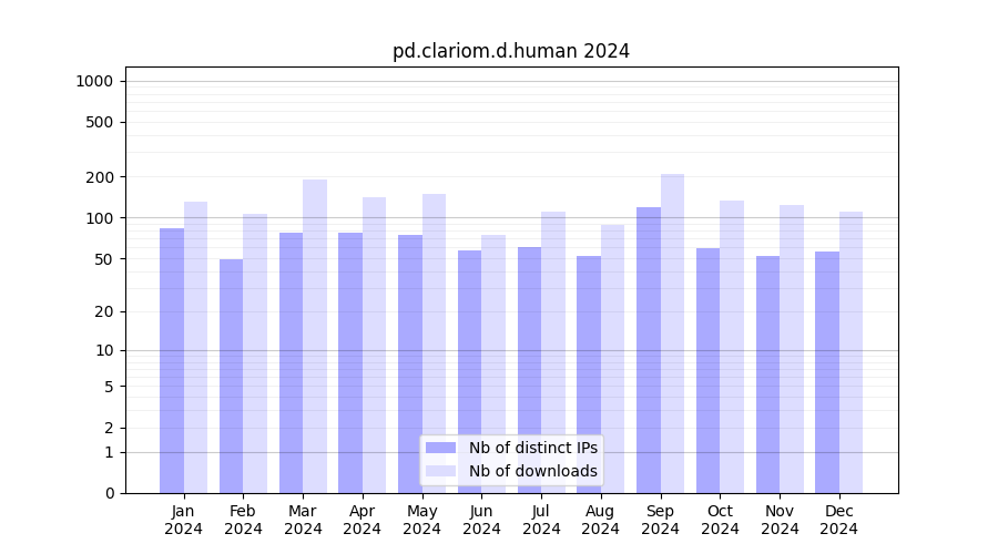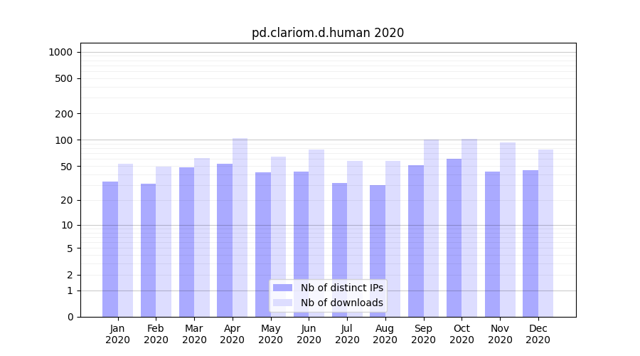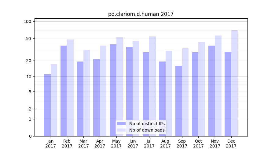 | Month | Nb of distinct IPs | Nb of downloads |
