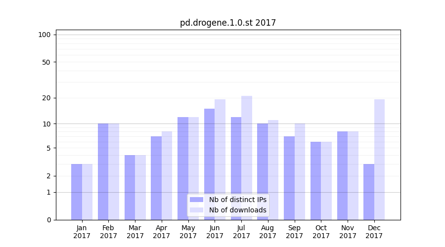 | Month | Nb of distinct IPs | Nb of downloads |