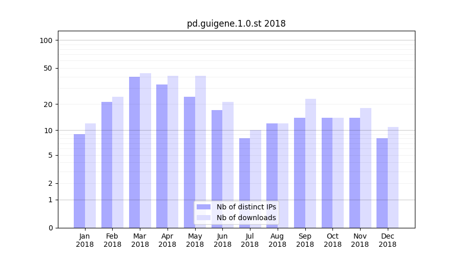 Number of downloads for annotation package pd.guigene.1.0.st, year by year, from 2025 back to 2014 (years with no downloads are omitted):