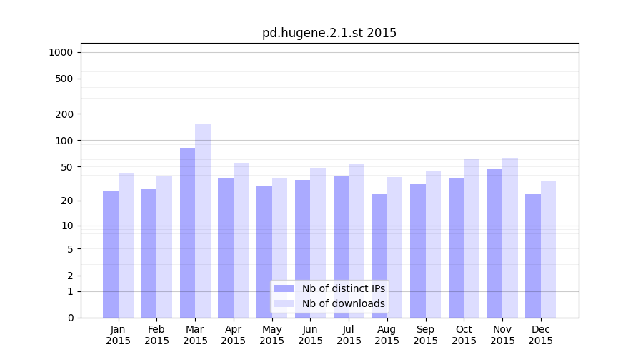 | Month | Nb of distinct IPs | Nb of downloads |