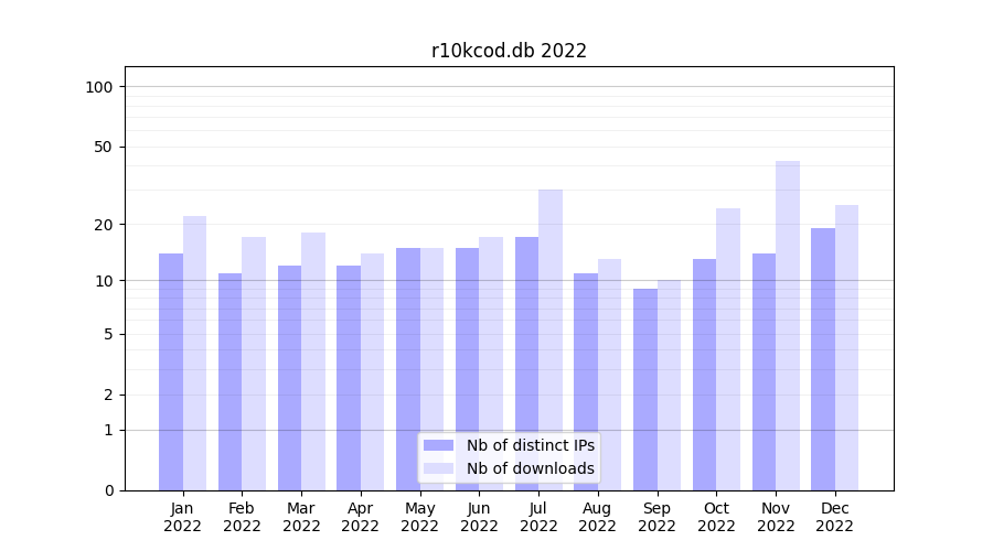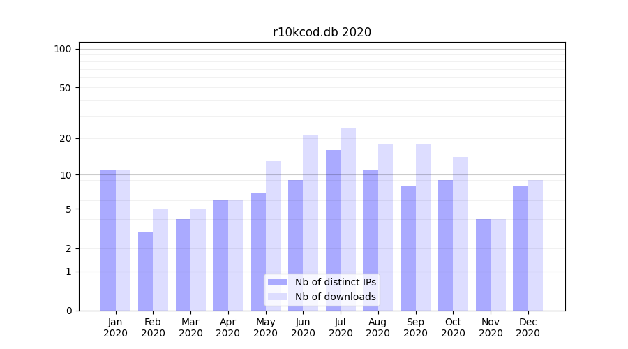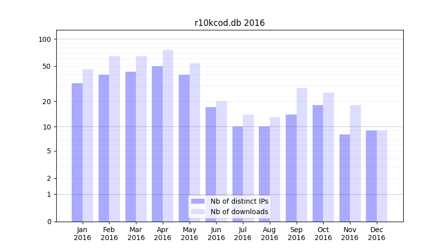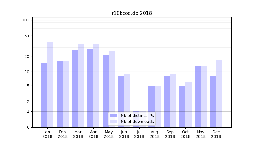 | Month | Nb of distinct IPs | Nb of downloads |