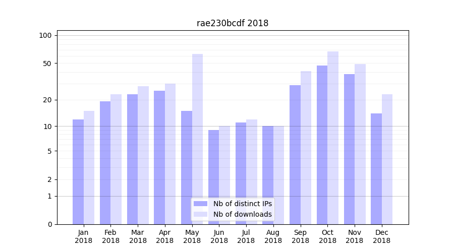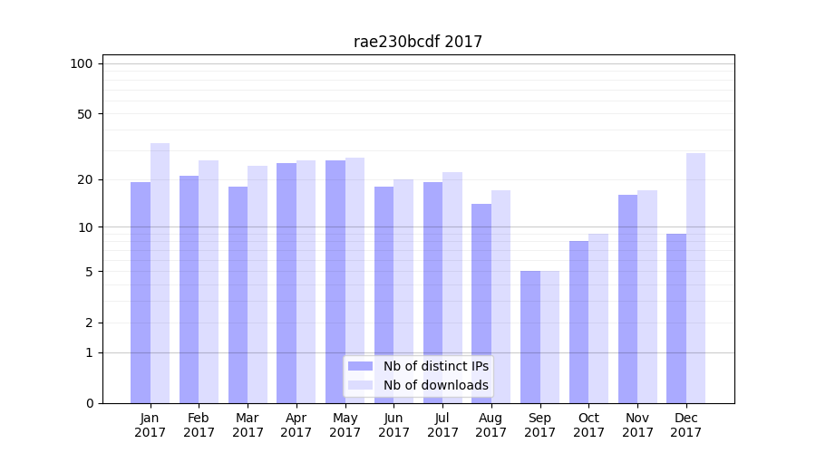 | Month | Nb of distinct IPs | Nb of downloads |