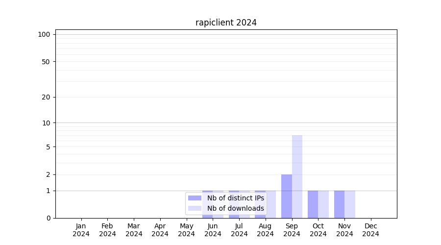 Number of downloads for annotation package rapiclient, year by year, from 2025 back to 2014 (years with no downloads are omitted):