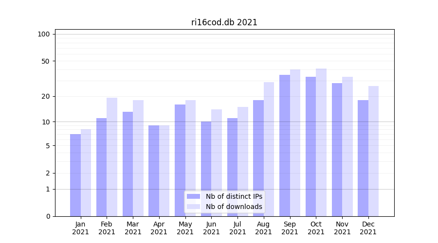 Number of downloads for annotation package ri16cod.db, year by year, from 2025 back to 2014 (years with no downloads are omitted):