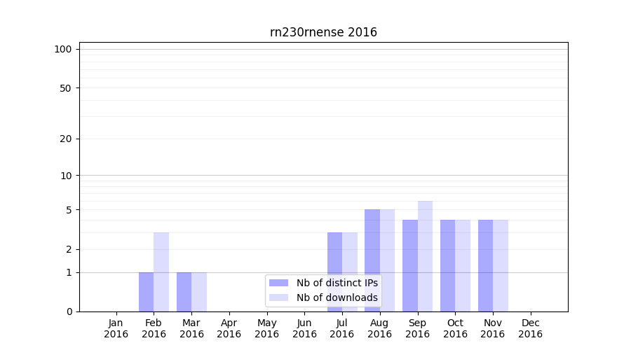 Number of downloads for annotation package rn230rnense, year by year, from 2025 back to 2014 (years with no downloads are omitted):