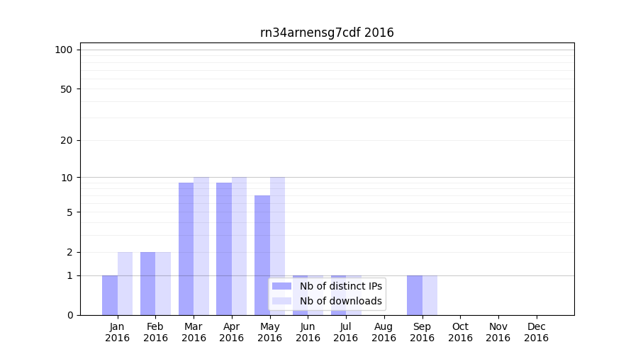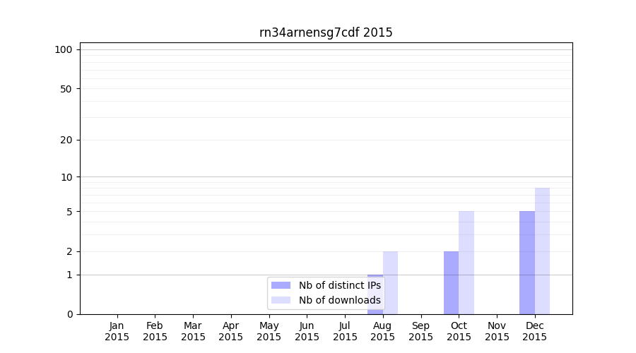 Number of downloads for annotation package rn34arnensg7cdf, year by year, from 2025 back to 2014 (years with no downloads are omitted):