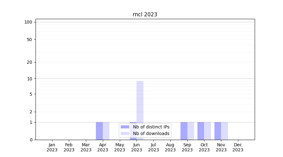Number of downloads for annotation package rncl, year by year, from 2025 back to 2014 (years with no downloads are omitted):