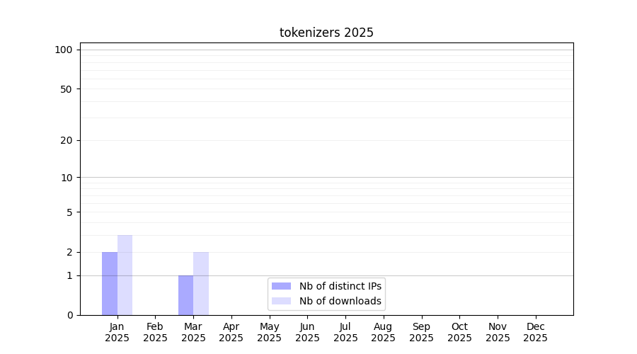 Number of downloads for annotation package tokenizers, year by year, from 2025 back to 2014 (years with no downloads are omitted):