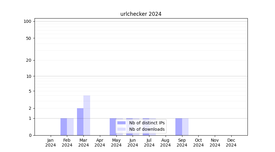 Number of downloads for annotation package urlchecker, year by year, from 2025 back to 2014 (years with no downloads are omitted):