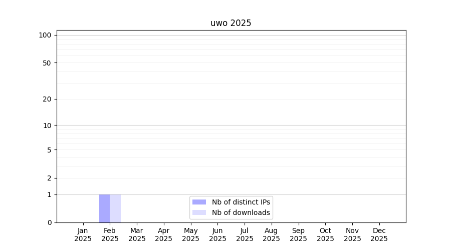 Number of downloads for annotation package uwo, year by year, from 2025 back to 2014 (years with no downloads are omitted):