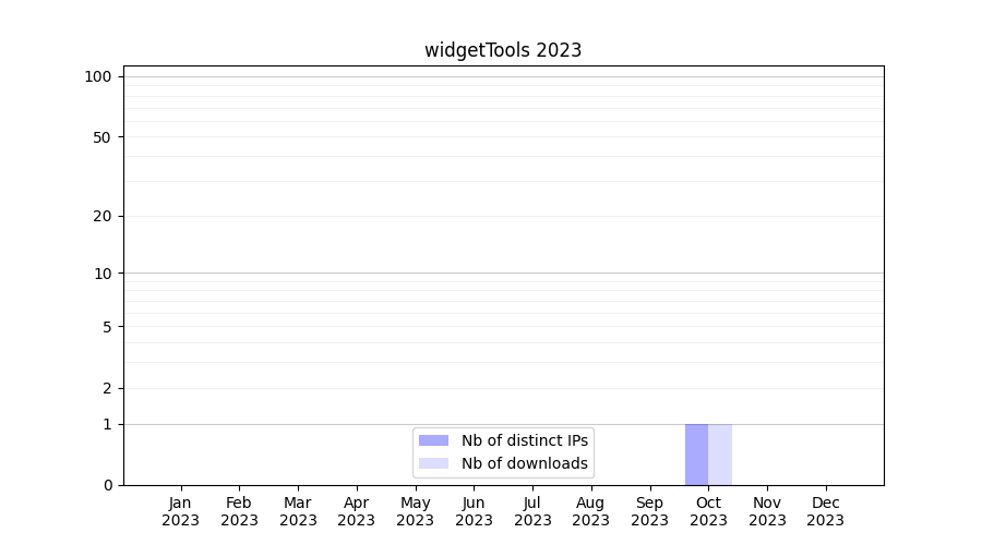 Number of downloads for annotation package widgetTools, year by year, from 2025 back to 2014 (years with no downloads are omitted):