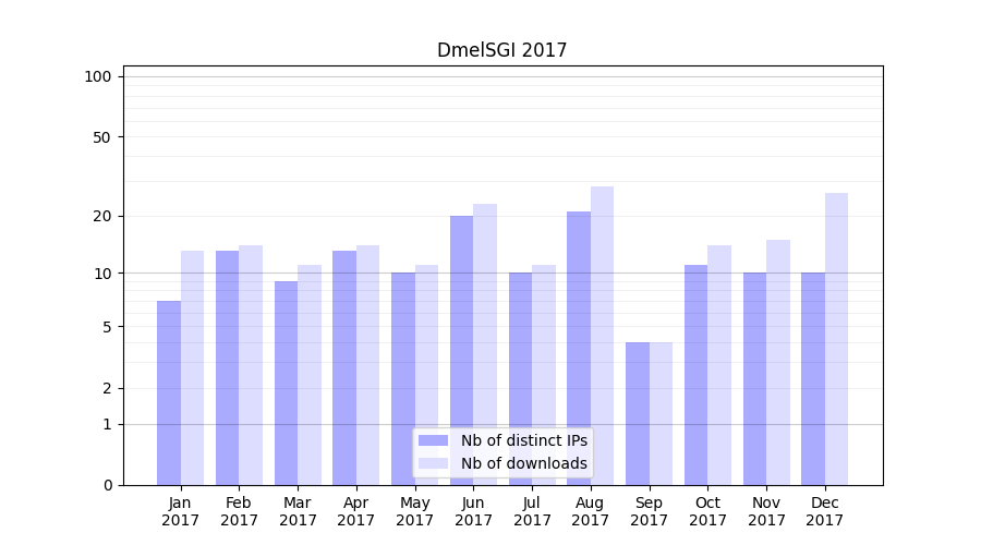 | Month | Nb of distinct IPs | Nb of downloads |
