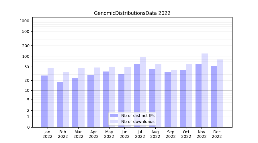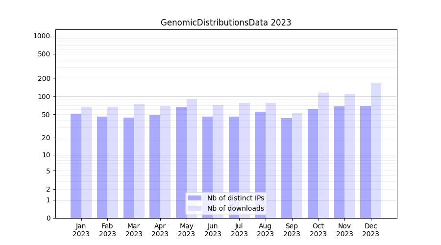 Download stats for experiment package GenomicDistributionsData