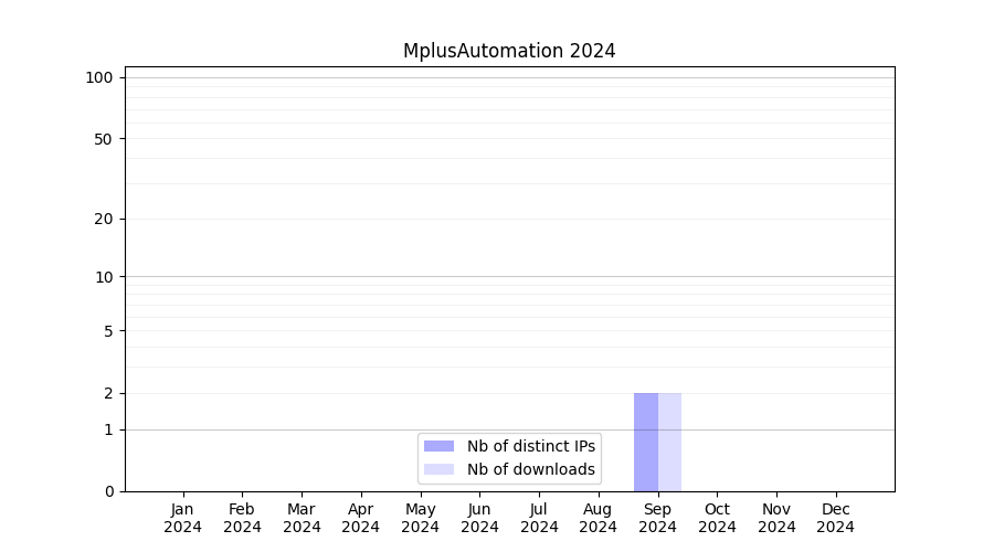 Number of downloads for experiment package MplusAutomation, year by year, from 2025 back to 2014 (years with no downloads are omitted):