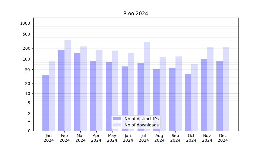 | Month | Nb of distinct IPs | Nb of downloads |