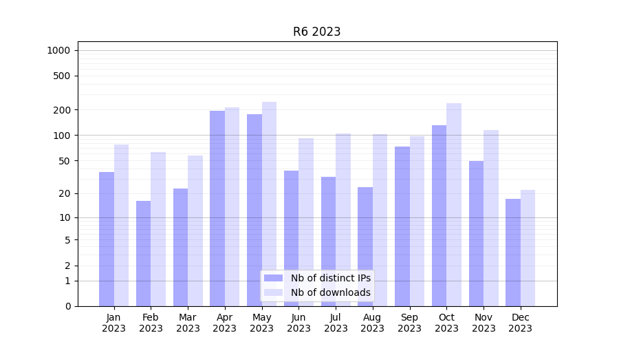 | Month | Nb of distinct IPs | Nb of downloads |