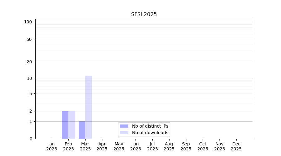 Number of downloads for experiment package SFSI, year by year, from 2025 back to 2014 (years with no downloads are omitted):