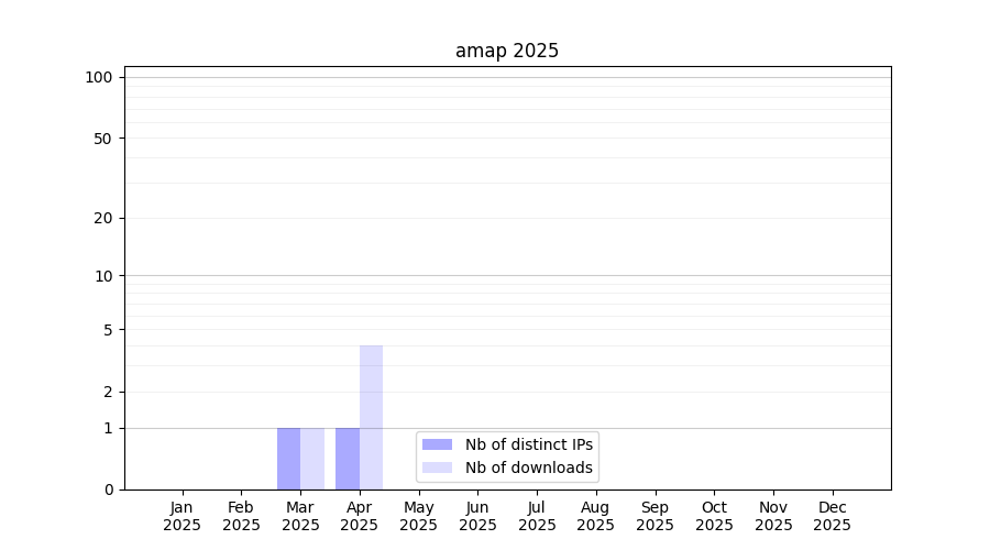 Number of downloads for experiment package amap, year by year, from 2025 back to 2014 (years with no downloads are omitted):
