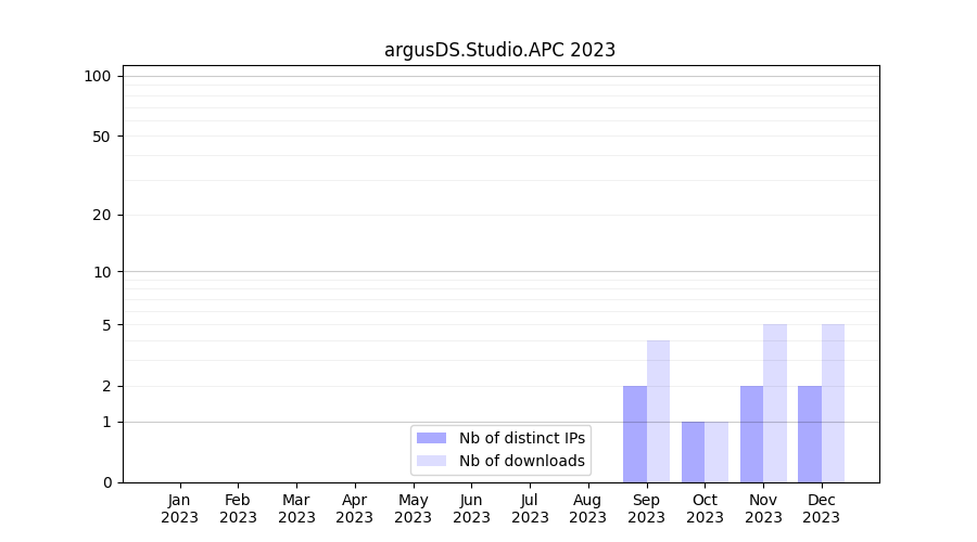 Number of downloads for experiment package argusDS.Studio.APC, year by year, from 2025 back to 2014 (years with no downloads are omitted):