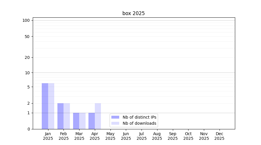 Number of downloads for experiment package box, year by year, from 2025 back to 2014 (years with no downloads are omitted):