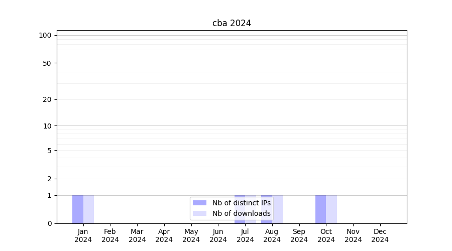 Number of downloads for experiment package cba, year by year, from 2025 back to 2014 (years with no downloads are omitted):