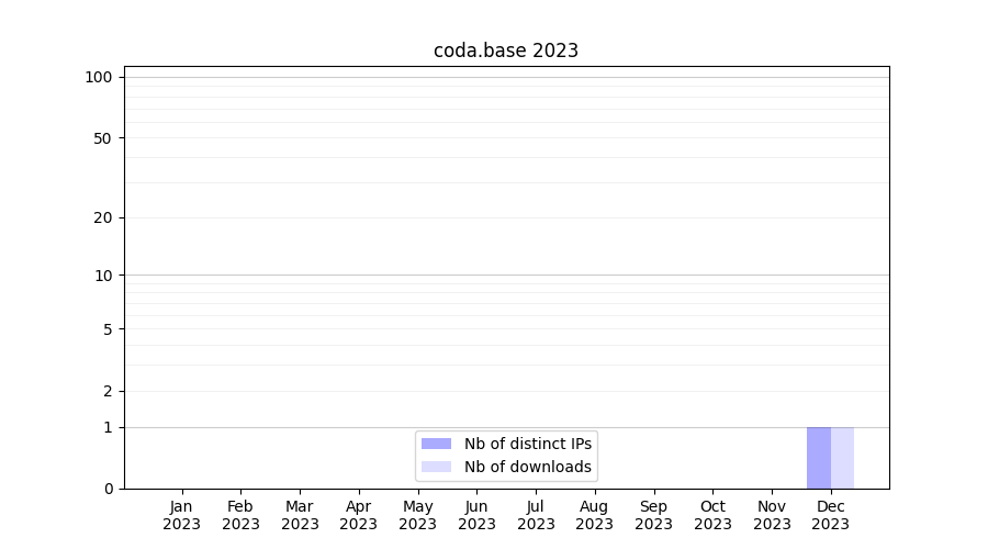 Number of downloads for experiment package coda.base, year by year, from 2025 back to 2014 (years with no downloads are omitted):
