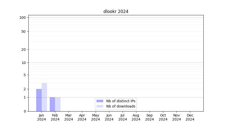 Number of downloads for experiment package dlookr, year by year, from 2025 back to 2014 (years with no downloads are omitted):